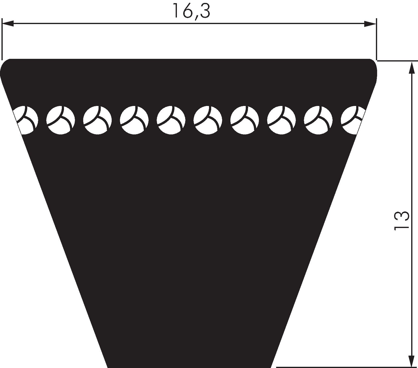 úzký klínový remen s nekrytými boky, s tvarovými z. XPB 16,3x13 (2240mm)
