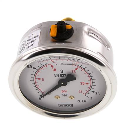 Glycerin-manometer vandret (CrNi/Ms),63mm, 0 til 1,6bar