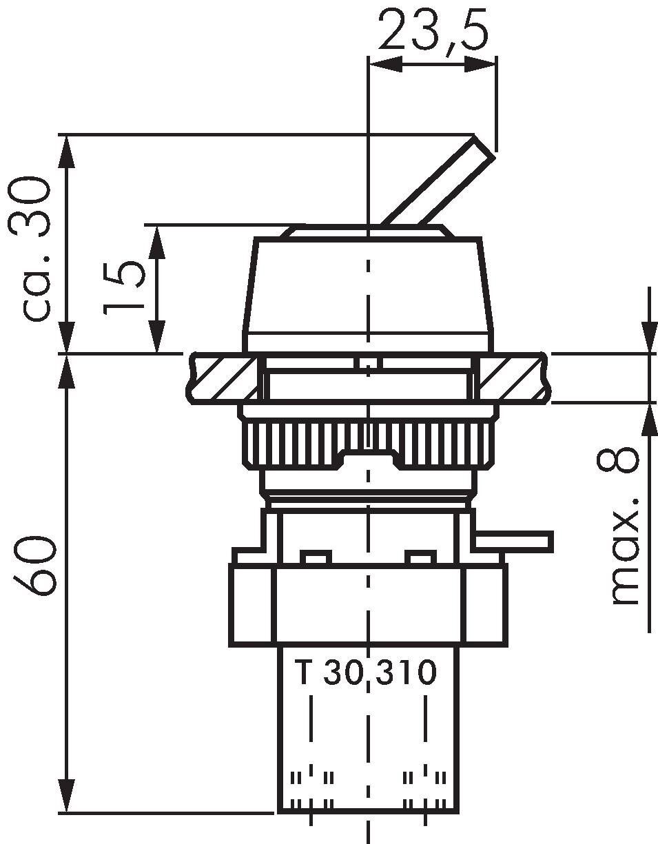 3/2-Wege Kipphebel-Ventil, schwarz (22,5mm), M5