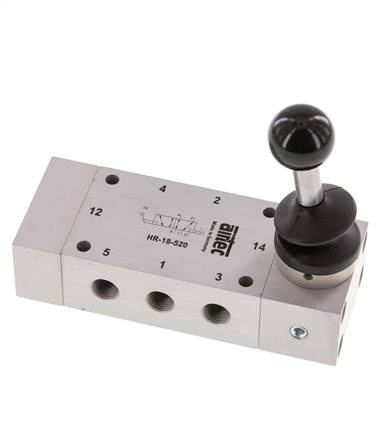 5/2-Wege Handhebelventil, Raste, G 1/8"