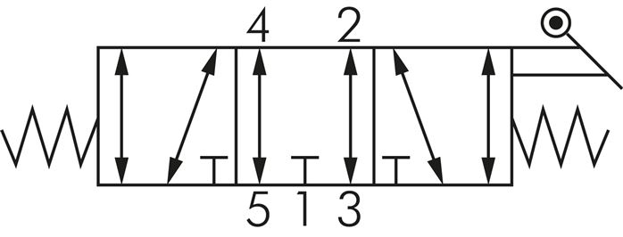 5/3-Wege Handhebelventil, Mittelstellung entlüftet, Federrückstellung, G 1/2"