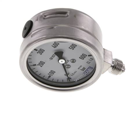 Chemie-Glycerin-Manometer senkrecht, 63mm, 0 - 250 bar