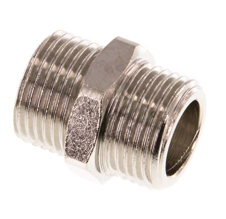 Doppelnippel G 3/8"-G 3/8", Messing vernickelt
