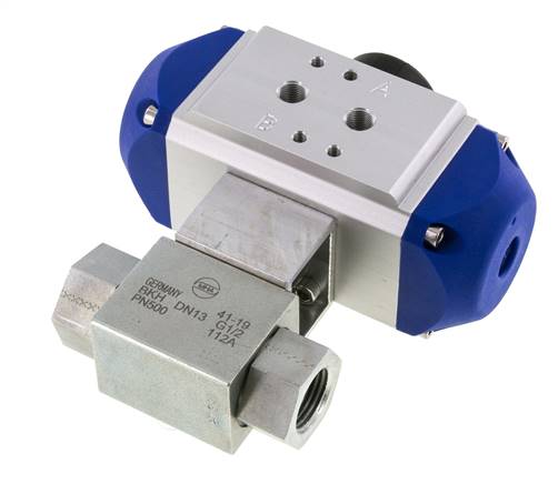 Pneumat. Hochdruck-Kugelhahn, Feder-öffnend, G 1/2", Stahl verzinkt