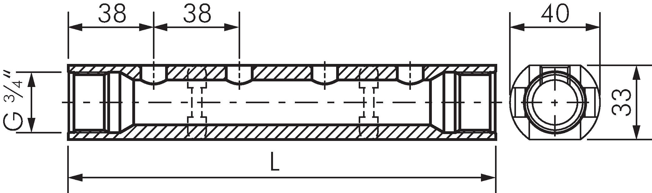Verteilerleiste 2x G 3/4"-4x G 1/4", 1.4401