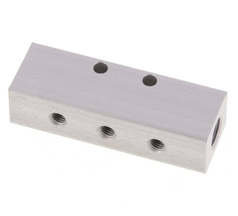 Verteilerleiste 2x G 1/8"-6x M 5, Aluminium eloxiert