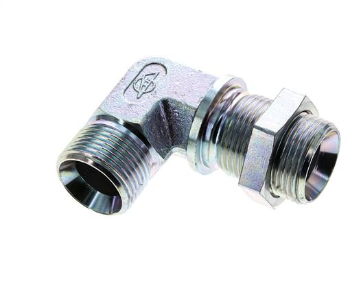 Elbow bulkhead nipple, 60° cone G 1", Zinc plated steel