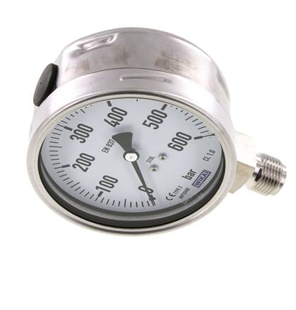 Chemische manometer verticaal, 100 mm, 0 tot 600 bar