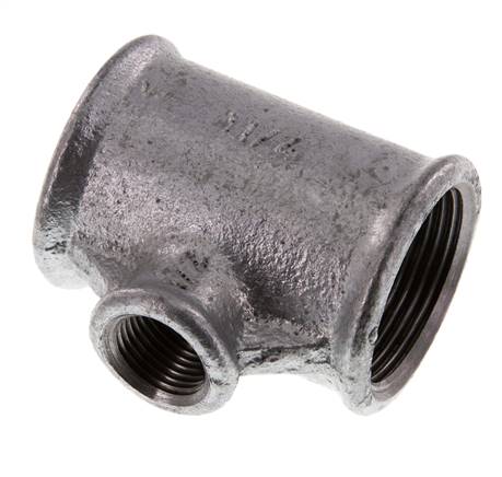 T-stuk Rp 1-1/4"-Rp 1/2"-Rp 1-1/4" (IG), Getemperd gietijzer verzinkt