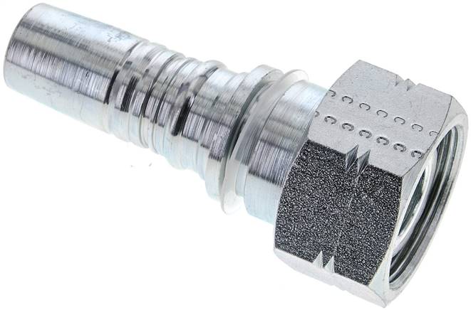 These crimped fittings with tear-off protection are developed specially for the 4 SH-hose. The 4 SH-hose should be skived not only externally but also internally. When compressing, a "metallic bond" is created between the fitting and the hose and this exposes the hose equipped with fittings to the maximum pressure load. The advantage of this combination is, amongst others, the use of a flexible 4-spiral hose or a 4-SH hose instead of a "rigid" 6-spiral hose.