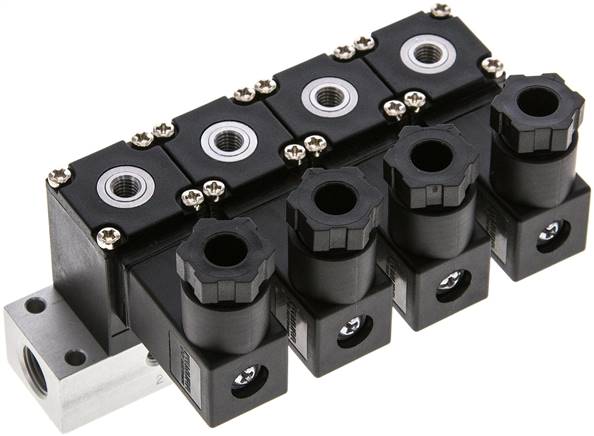 3/2-way solenoid valve, M 5, closed (NC), 4-way, 24 V DC