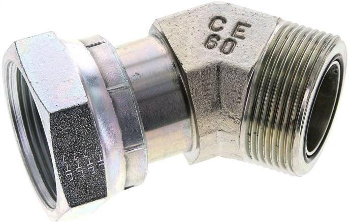 Zeichnung: 45° ORFS-Winkelverschraubung mit Überwurfmutter