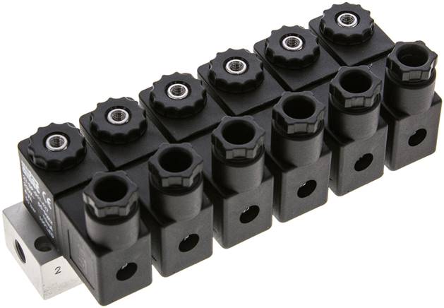3/2-way solenoid valve, G 1/8", closed (NC), 6-way, 230 V AC