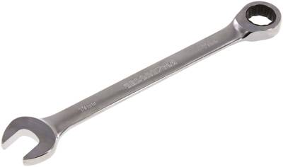 Flat version with fine geared ratchet, very high torque transfer, change of direction of rotation by rotating the key, Vanadium steel, chromium plated