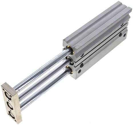 Body: Anodized aluminium, Plate: Steel, Guiding rods: Steel, hard chrome-plated, piston rod: Steel, hard chrome-plated, piston: Aluminium, Gaskets: NBR / PUR