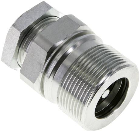 Schnellverschluss-Schraubkupplungen sperren am Stecker und an der Muffe im entkuppelten Zustand ab. Die Verbindung von Kupplungsmuffe und Kupplungsstecker erfolgt durch Verschrauben mit der Handmutter. Beim Kupplungsvorgang ist der Ventilraum abgedichtet bevor sich die Ventile öffnen. Beim Entkuppeln sind die Ventile bereits geschlossen, bevor die Verbindung aus der Abdichtung gezogen werden kann.