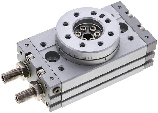 Body and swivel table anodized aluminum, Piston: Stainless steel with magnet insert, Pinion: Steel, Seals: NBR