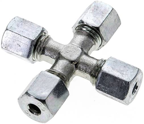 Kreuz-Schneidringverschraubung 6 S (M14x1,5), Stahl verzinkt