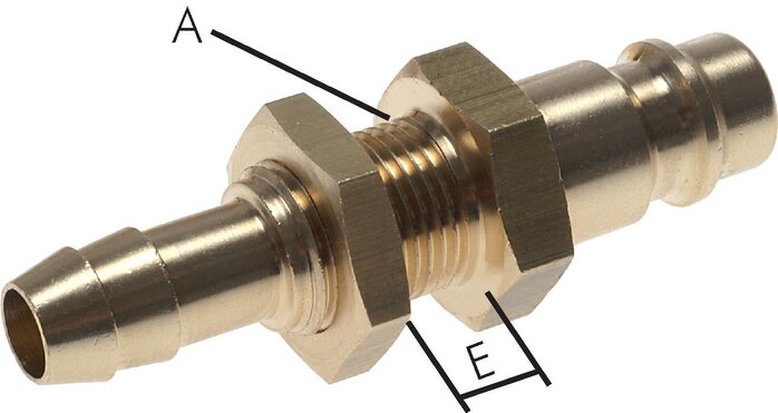 Principskitse: Koblingsstik med slangestuds og skotgevind, messing Principskitse: Specialudførelse BA Detaljevisning: Stikdimensioner