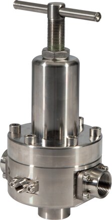 Exemplarische Darstellung: Edelstahl-Druckregler (1.4404) Exemplarische Darstellung: Messing-Druckregler Schaltsymbol: Druckregler