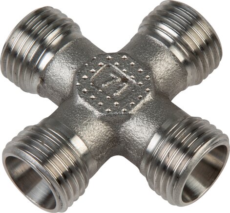 Exemplarische Darstellung: Kreuz-Verschraubung, Stahl verzinkt Exemplarische Darstellung: Kreuz-Verschraubung, 1.4571 Exemplarische Darstellung: Kreuz-Verschraubung, ohne Mutter & Schneidring, Stahl verzinkt Exemplarische Darstellung: Kreuz-verschraubung, ohne Mutter & Schneidring, 1.4571