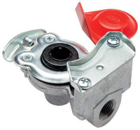 Exemplarische Darstellung: Kupplungsköpfe für Druckluftbremsen, Bremse (gelb) für Anhänger, DIN 74342 Exemplarische Darstellung: Kupplungsköpfe für Druckluftbremsen, Vorrat (rot) für Anhänger, DIN 74342 Exemplarische Darstellung: Kupplungsköpfe für Druckluftbremsen, Bremse (gelb) für Zugmaschinen, DIN 74254 Exemplarische Darstellung: Kupplungsköpfe für Druckluftbremsen, Vorrat (rot) für Zugmaschinen, DIN 74254