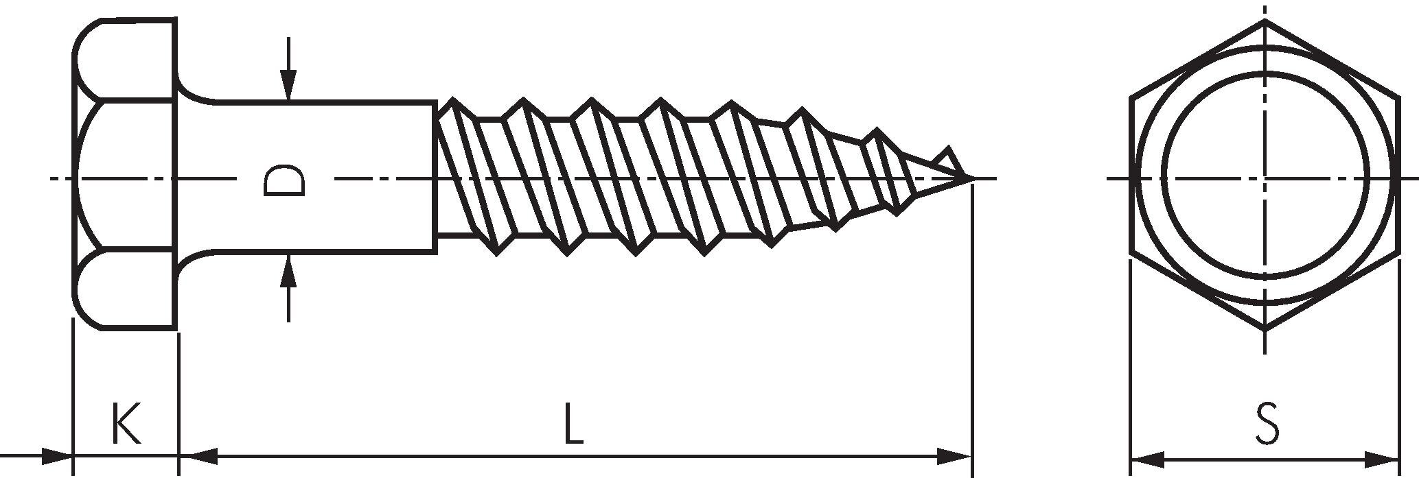 Exemplary representation: Wood screw DIN 571 (galvanised steel) Exemplary representation: Wood screw DIN 571 (stainless steel A2)