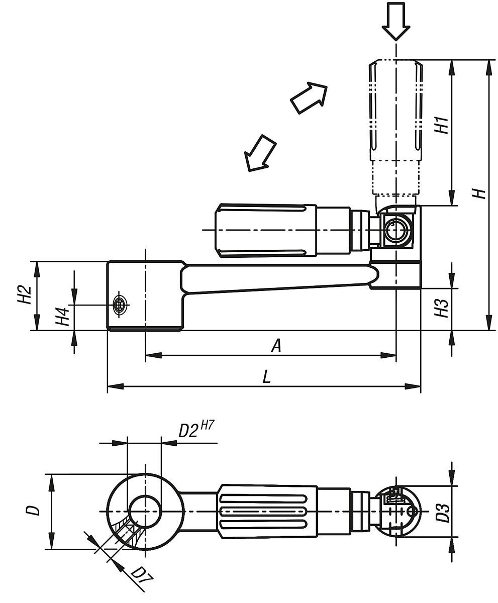 Handkurbeln Aluminium mit Sicherheits-Zylindergriff mit Passbohrung
