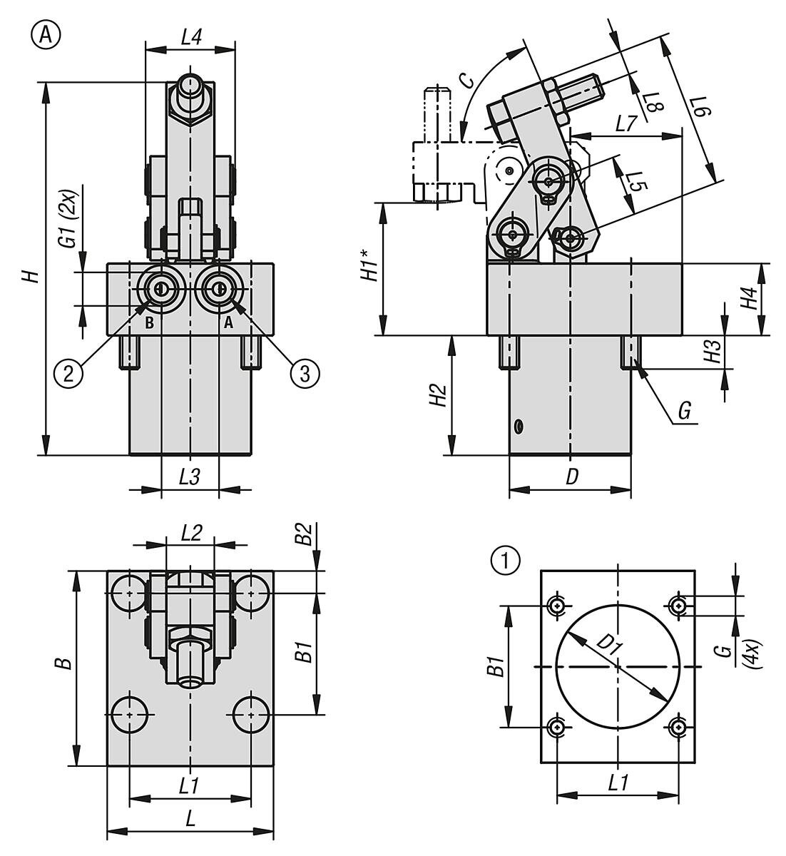 Hebelspanner hydraulisch doppelt wirkend, Form A, Gewindeanschluss